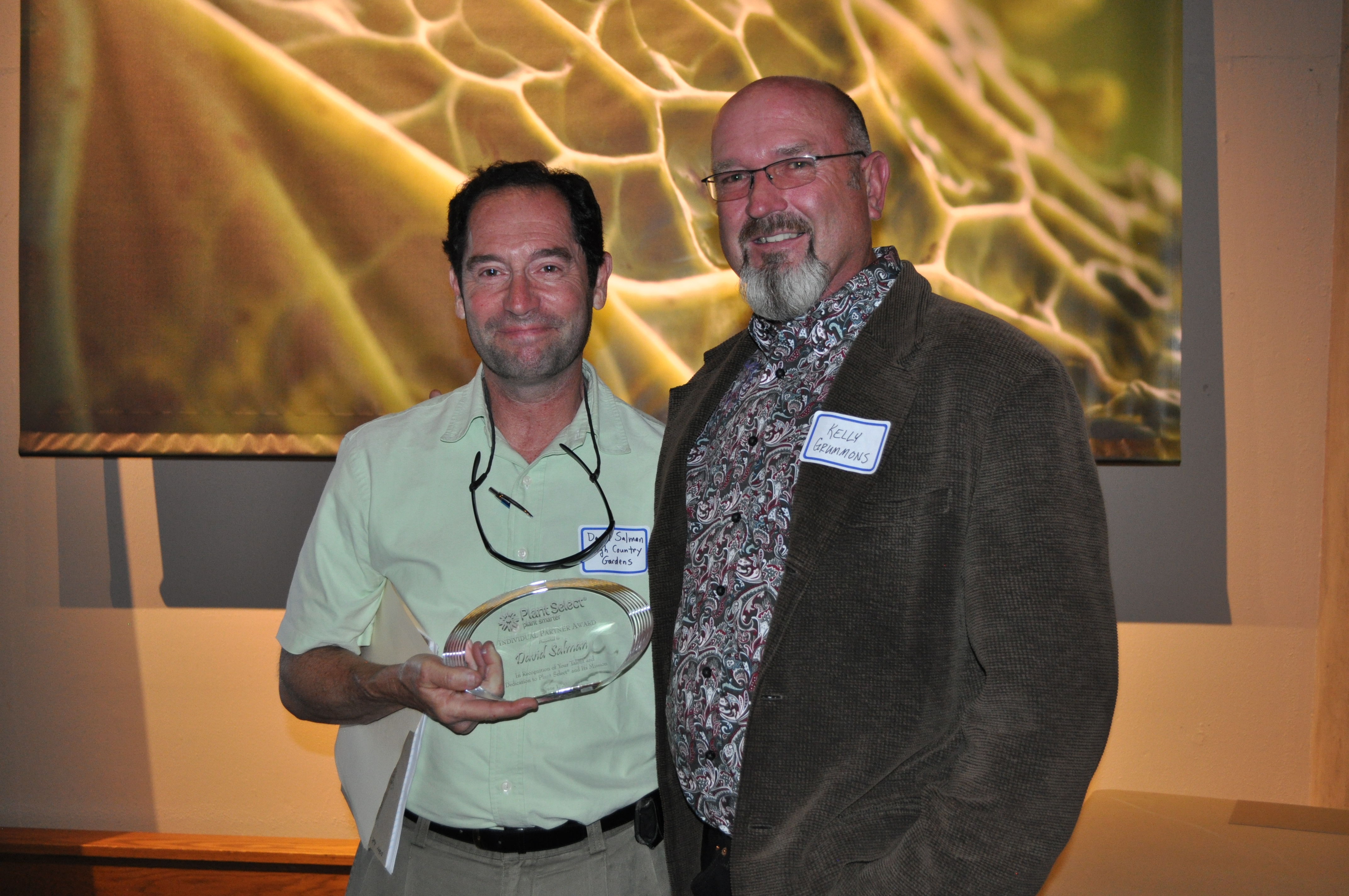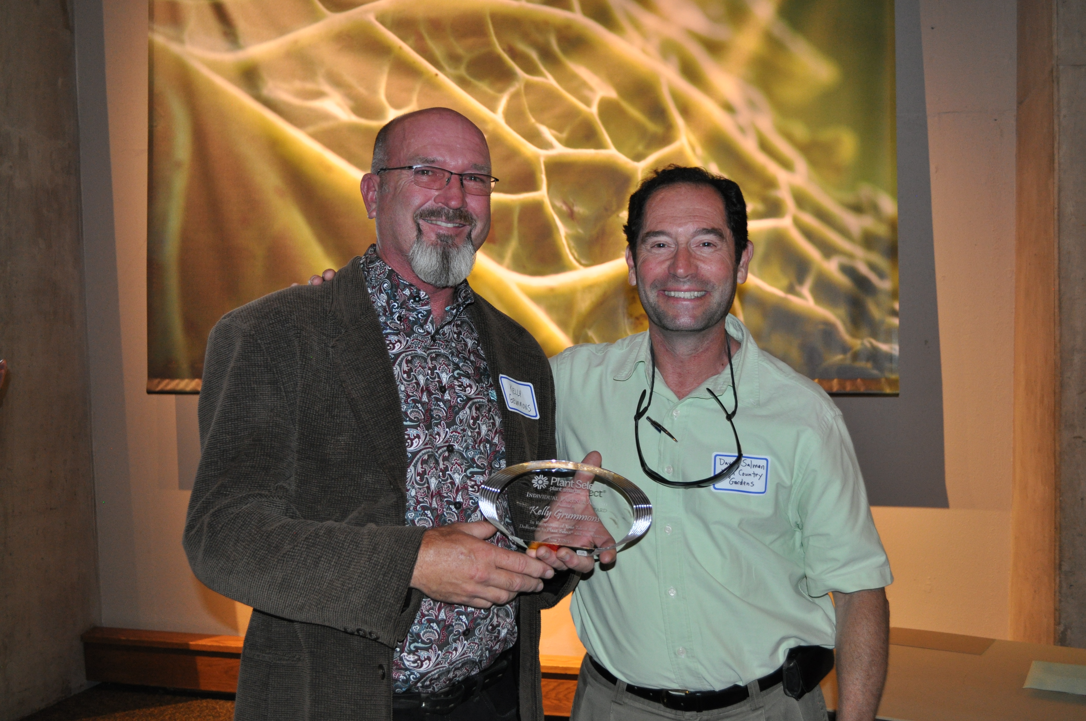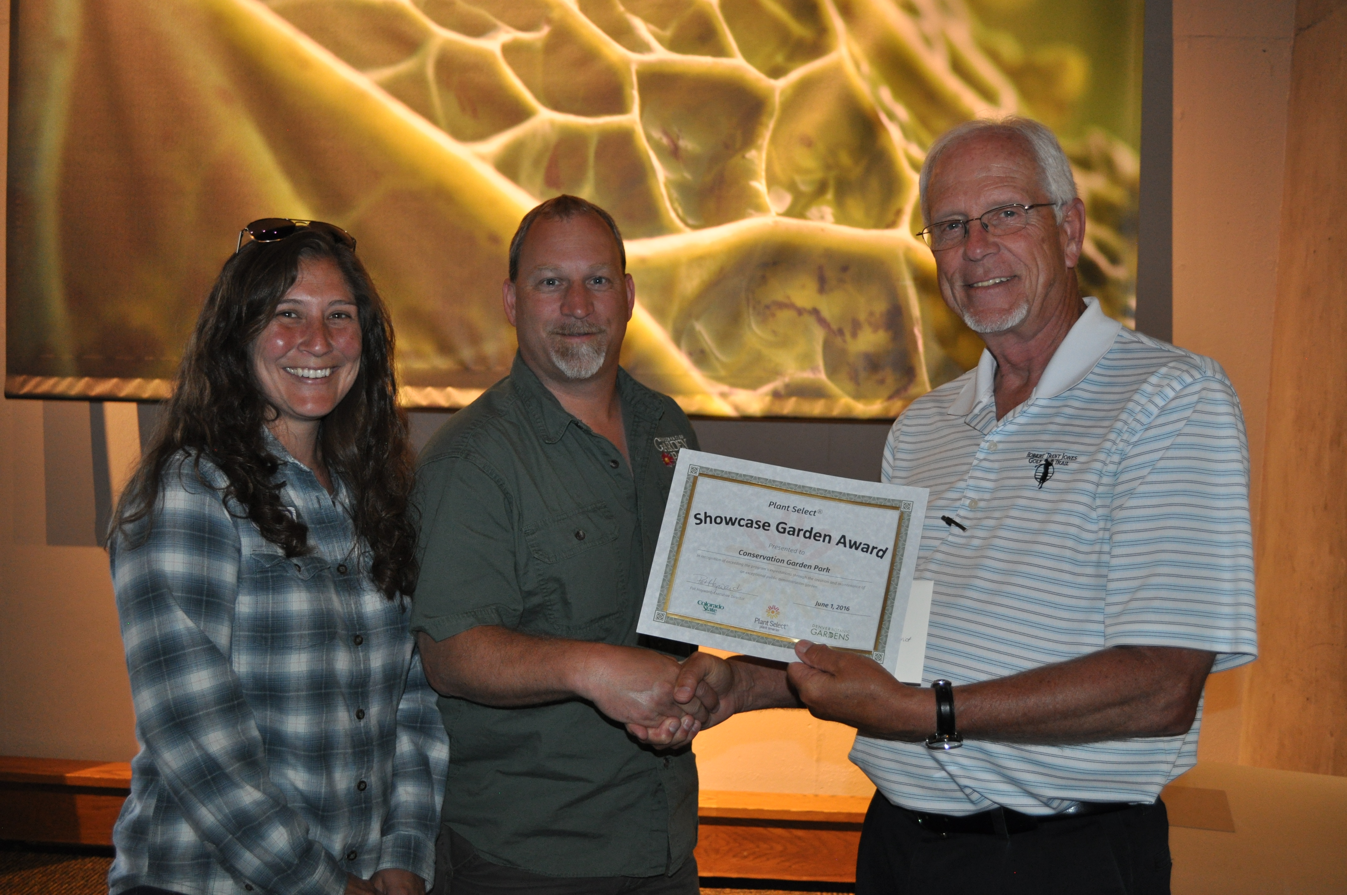 Zach Versluis accepts the Showcase Garden Award from Plant Select president, Gene Pielin for the City of Aurora Xeriscape Demonstration Garden