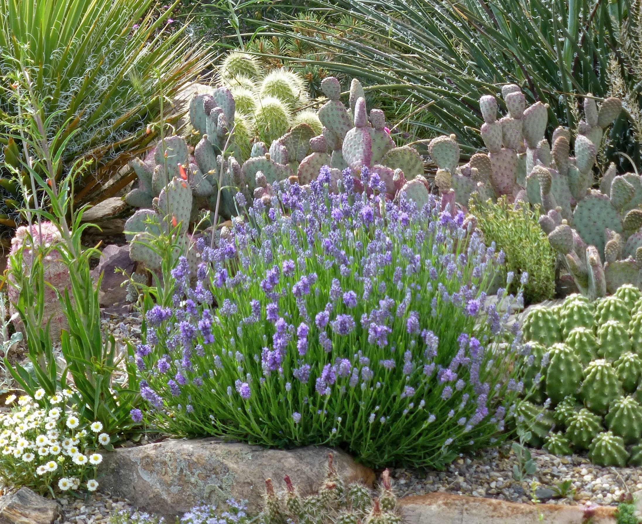 Lavandula Wee One Opuntia Echinocereus Hesperaloe Coral Glow Yucca_DS CROP CLOSE